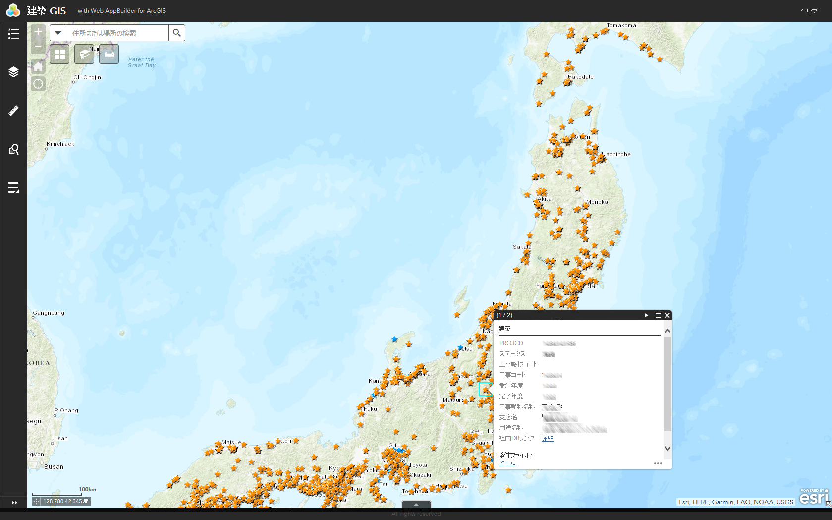 システムの移行には ESRI ジャパンのコンサルティングサービスを利用した。土木や建築、不動産の各 Web GIS アプリを社内の基幹システムと連携させた他、ArcGIS Web AppBuilder(Developer Edition)を利用して独自のウィジェットを作成した。