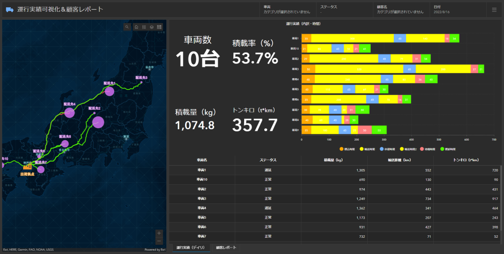 流通・小売 他 課題別活用法 ラストマイルデリバリー解析によるルート配送の効率化 配送業務に欠かせない配車計画 複数の顧客をトラック何台でどの様な順路で回ると効率的か? 配送業務を効率化に向けて、また、以前から属人化しやすい領域である配車計画業務において、デジタル活用の流れはますます進んでおります。 詳細はこちら